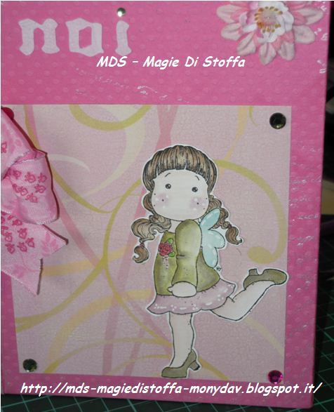 E' una card molto semplice, lei non ama troppi fronzoli, però... potevo, secondo voi, non mettere almeno un bel fiocco e un paio di strass?????????? Certo che no!!!!